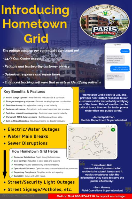 Paris is a historic, spirited, and evolving community with small town hospitality. Paris strives to encourage great innovation, sustainable development, and enhanced recreational and educational opportunities, thus providing a safe and secure place to live, raise families, work and conduct business.